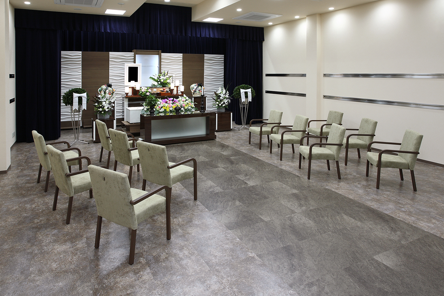 家族葬専用プラン絆 式場内は人数に応じた設営で広さを調整いたします。