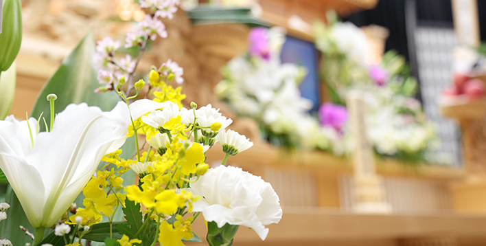 駐車場完備当斎場では、お供え物の生花なども