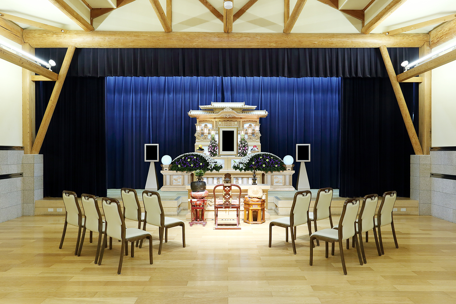 1階 :ホール・親族控室・会食室・寺院控室・厨房・ロビー・WC・バス