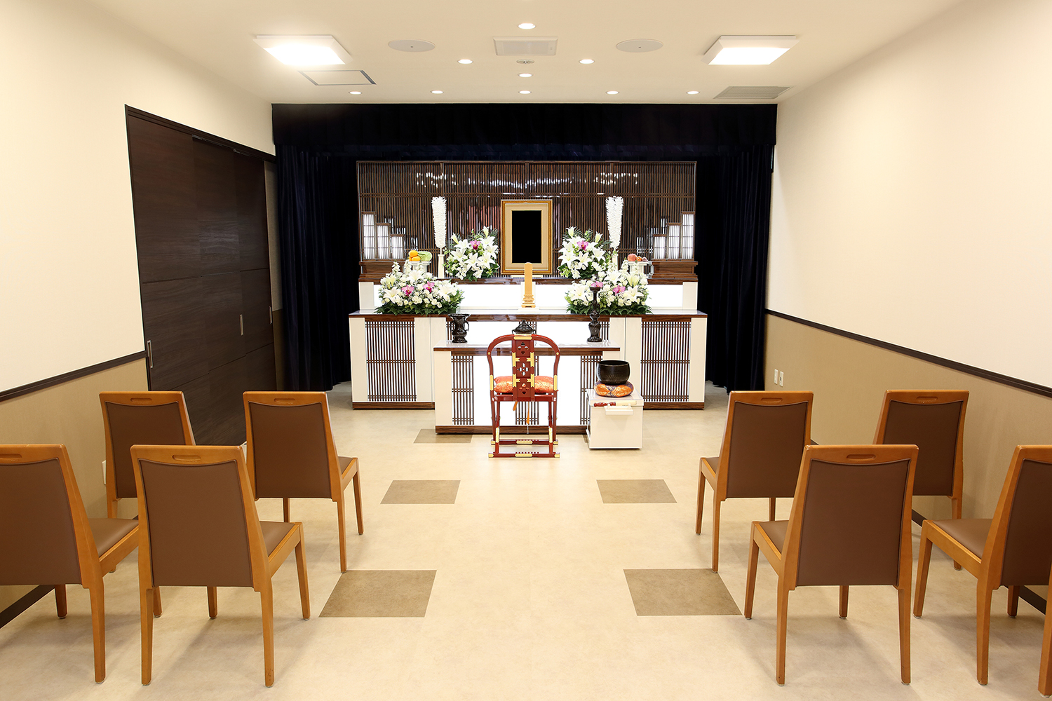 1階:家族葬専門ホール 、リビングルーム 、親族控室兼寺院控室 、ベッドルーム